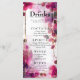 Menu & Bebidas Encantamento de Fúchsia: Watercolor Wedding Suite Introdução ao Cartão Menu de Casamento do Encantamento Fuchsia: Watercolor Wedding Suite, um toque refinado e personalizado para a sua celebração de casamento. A frente do cartão apresenta uma imagem de fundo adornada com a beleza vibrante das floradas de fuchsia e do trepador de mariquinhas, criando uma atmosfera visualmente gritante e encantadora. O cardápio de casamento cuidadosamente organizado é apresentado elegantemente, fornecendo aos seus convidados uma prévia encantadora das ofertas culinárias. No verso do cartão, o menu "As Bebidas" desenrola-se sobre o mesmo cenário de fundo, mantendo um tema visual coeso que captura sem problemas o ambiente encantador da coleção Encantamento Fuchsia. O cabeçalho sofisticado "The Beinks" define o tom para uma experiência de bebidas refinada, enquanto os nomes dos casais e a data de carência na parte inferior, transformando o cartão de menu em uma manutenção apreciada. Este Cartão de Menu de Casamento não só serve como um guia prático para seus convidados, como também se torna um elemento belamente desenhado e personalizado que captura perfeitamente o vibrante e encantador ambiente do Encantamento Fuchsia: Watercolor Wedding Suite durante toda a sua celebração de casamento.