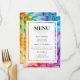 Apresentando o menu plano duplo e a placa de bebida da "Eteal Bloom Collection", oferecendo uma apresentação perfeita e na moda das opções culinárias e de bebidas para a celebração do casamento. Na frente, a mesmerização do trabalho de arte de tinta alcoólica em tons vibrantes de blues, roxas, vermelhos, laranjas e verdes, acentuados por delicados lírios duplamente expostos, dá um tom elegante e artístico. A legenda "O Menu" convida os hóspedes a explorar as delícias culinárias, enquanto os nomes dos casais e a data do casamento acrescentam um toque personalizado, melhorando a sofisticação do evento. O menu mostra uma seleção encantadora de pratos, cada um descrito em detalhes, que tentam conciliar hóspedes com ofertas que se alinham ao tema criativo e refinado. Ao virar para trás, os convidados são recebidos pelo Menu Flat Drink, com o mesmo trabalho de arte de ativação e a legenda "O Menu". Aqui, eles podem explorar uma série de seleções de bebidas, com espaço para destacar coquetéis de assinatura ou opções especiais de bebidas. Os nomes dos casais e a data do casamento continuam a ser afixados elegantemente, mantendo um design coeso e personalizado por toda a parte. Este cartão de lado duplo não só melhora a decoração da recepção com papelaria coordenada, como também garante uma apresentação visualmente incrível e coesa para o seu dia especial. Experimente a vibrante elegância da "Coleção Eetérea de Bloom", onde cada detalhe é cuidadosamente trabalhado para criar uma celebração memorável e encantadora.