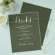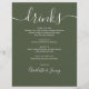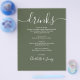 Estes menus elegantes de bebida minimalista verde-oliva são perfeitos para qualquer celebração. Projetado por Thisnotme©