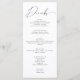 Este cartão de rico moderno de caligrafia é perfeito para um janto de casamento sofisticado. O simples design minimalista apresenta uma tipografia elegante a preto sobre fundo branco. O script em combinação com a fonte sans serif dá uma aparência simples e limpa. Além das opções de cor que você vê aqui, esta placa de menu de bar é totalmente personalizável. Você pode até mudar a cor da manchete da caligrafia. Este menu de bebidas também pode ser usado para seu janto de ensaio, recepção de casamento ou qualquer outro evento. Simplesmente apague os nomes e a data na parte traseira do cartão de menu para torná-lo adequado para um evento que não seja de casamento.