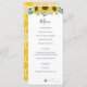 Um cartão de menu perfeito para um bebê ou chá de panela com tema de abelhas. Apresentando uma abelha de hidrocolorida e girassóis. Personalize com o texto do menu para um brunch, almoço ou janto.