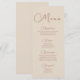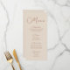 Este menu é caracterizado pelo estilo boho, cores neutras terrosas e bege, com uma mistura de diferentes estilos de fontes, muitas vezes em tamanhos diferentes, para criar uma aparência única e eclética que torna esses menus uma estética natural.