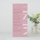 Belo cardápio monocromático de rosa com uma grande tipografia.