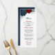 lindas flores vermelhas e marinhos azuis e elegantes folhas do cardápio botânico de casamento.