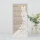 Um belo vestido de noiva em uma pá de fundo acentua este cardápio para o chá de panela rústico, country ou vintage.