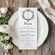 Menu black and white foliage Crest wedding
