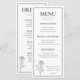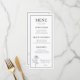 Imagine receber este elegante menu de casamento - é como uma espiada esgueirada numa noite de prazer culinário! A frente apresenta um menu bem projetado com seções para Apetistas, Cursos Principais e Desserts, cada uma listando opções de água na boca, como "Caprese Skewers", "Grilled Tenderloin" e "Assorted Mini Desserts". No topo, os nomes, por exemplo "Jessica & Michael" e a data do seu casamento, acrescentam um toque pessoal. Mas espere, há mais! Sacudir-o para encontrar um cardápio de bebida sofisticado, perfeito para brindar o casal feliz. Quer você esteja no clima para um cocktail clássico, um vinho fino, ou uma opção refrescante não-alcoólica, este menu tem tudo. Isto não é apenas um cardápio; é um guardião que captura a essência de uma bela celebração do casamento. É elegante, pessoal e uma maneira deliciosa de compartilhar a alegria do dia especial com seus convidados.