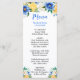 This beautiful and elegant wedding menu features watercolor blue, yellow and white flowers with foliage. The text combines handwritten script and serif fonts for a stylish and modern look. This is perfect for a spring or summer rustic wedding.
