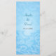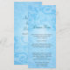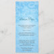 Escrolho floral faz uma aparência única para este adorável cartão azul de cardápio de casamento. A imagem é repetida na parte inferior como uma marca d'água para compensar o texto personalizado do menu casamento. Toda a imagem é repetida no reverso de maneira oposta e o texto pode ser adicionado ou removido acima dela. Uma elegante e clássica busca um dia especial. Disponível em cores alternativas com produtos correspondentes. com.