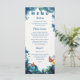 Printed on high-quality cardstock, this menu card showcases your meal selections with modern, easy-to-read typography framed by romantic blue and green foliage. Perfect for spring or summer weddings, garden receptions, or nature-inspired celebrations.