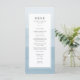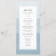 Menu Blue Modern Wedding. Este belo e elegante cardápio de casamento azul empoeirado apresenta um fundo ombre pintado a aquarela com uma borda branca. A parte de trás do convite inclui o mesmo fundo de aquarela azul. Localize itens correspondentes na Coleção de Casamentos de Ombre de Cor Azul Dusty.