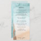 Menu de casamento de destino de praia de Boho com linha costeira oceânica de cor d'água. Esta bela design tem uma praia arenosa, uma cesta de pampas e flores tropicais. O modelo está pronto para você personalizar e adicionar os itens de comida. Design para um casamento de destino tropical, casamento de vintage à beira-mar, tema marítimo náutico ou de verão. Por favor, procure na minha loja a coleção Boho Beach para coordenar cartões de gabinete e acessórios de correio.