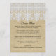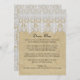 NOTA: este é um design impresso plano, não há lugar elevado, tecido ou elementos em camadas neste produto. COR PALETA: branco, castanho, colagem de DESIGN: Correspondência entre o Menu Recepção ou o Menu de Janto de Chá de panela com as opções de entrada. Este é um BOHO moderno ou Estilo Boêmiano, inspirado por ciganos, o olhar de na moda de chico moderno. Tem uma beleza simples, limpa, mas adorável. Criado da vintage, era vitoriana ou edwardiana, espiral barroca de queda profunda, modelo de rendas das folhas e ornamentos design de queda de lágrimas que foram graficamente transformados numa elegante e sofisticada fronteira de trim de rendas. Os cadarços são colocados sobre um padrão de fundo texturizado de burlap manchado com chá. Está disponível um conjunto completo de convites para casamento. O verso tem a queda de lágrimas, o padrão do local do ponto de espiral de diamante em um padrão repetido de cheio.