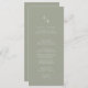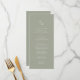 Este cartão de cardápio de boho chic sage verde monograma é perfeito para um casamento minimalista. A moderna design boêmica verde-luz neutra apresenta uma caligrafia rústica simples com um estilo único, mas clássico. Personalizou o menu monograma com as suas primeiras iniciais.