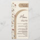 Bem-vindos aos seus convidados de casamento com estes adoráveis menus personalizados. Projetado para ser encomendado individualmente, o nome do seu convidado aparece no topo para receber cada convidado e deixá-los saber onde está o seu lugar. A design apresenta elegância bóvica moderna com cores de fundo de tonalidades de mocha e creme, formas de arco e um spray de flores silvestres rústicas em tons de terracota, rosa poeirento e azul-de-pera. A tipografia inclui títulos modernos de escrituras e há espaço para os nomes do casal, data do casamento e, claro, o cardápio!