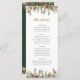 Boho Rustic Christmas Pine Botanical Lights Winter Holiday Wedding Menu. Menu de botânica boêmica com luzes elegantes e simples botânicos de pínus rústicos na cor d'água impressa à mão. A cor de fundo verde é linda para casamentos de boho e casamentos de natal. Modelo de menu editável para feriados e casamentos no inverno.