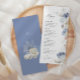 Boho Rustic Elegant No Menu De Casamento Azul Dusty, Shell Coral Do Oceano Praia. O estilo boêmico arranjou conchas balneares minimalistas com elegantes e simples conchas e corais de bolor, azuis e creme, com impressão em branco. A cor de fundo azul empoeirada é linda para casamentos de boho e casamentos de praia. Convites editáveis para primavera, verão, outono (outono) e casamentos no inverno.