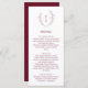 This monogram wedding dinner menu features a burgundy typography and white background with refined boho botanical wreath. A classic monogram adds a formal touch, while the clean layout presents the menu clearly. The design feels warm, stylish, and easy to read.