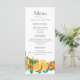 Nosso Menu Boho Orange Blossom é uma na moda para comemorar e compartilhar seu evento alegre. Este design impressionante apresenta uma série de flores de laranja e laranjas lindas acrescenta o toque perfeito para qualquer casamento ou evento temático de jardim.