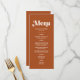 Perfeito para a decoração do casamento outono. Adotar um tema de casamento retrô com um toque de talento de disco, ideal para um casamento boho disco ou um casamento clássico retrô dos anos 70. Este cardápio é versátil para vários contextos, seja um casamento do boho ocidental, um casamento no campo, ou um casamento do cowboy. As matizes de terracota enriquecem um casamento sage verde e terracotta, criando um tema de casamento boho terracotta. Perfeito para casamentos desérticos, casamentos laranja queimados e ideias casamentos outono, este cardápio vai melhorar muito o seu tema de casamento laranja queimado.