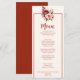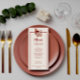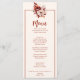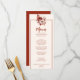 Um rico cai no outono de marfim beige terracotta queimou laranja no menu janto de casamento floral. Que apresenta as flores queimadas de laranja e creme-bege de marfim como peônia e buquê de folhas de outono.