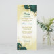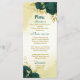 Belo cartão de cardápio de casamento com flores verdes esmeraldas e folhas de ouro. São simulados os detalhes do brilho dourado. PARA MAIS PRODUTOS CORRESPONDENTES, consulte a coleção acima ou entre em contato comigo