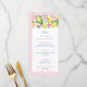 Um cartão de menu bonito, cor-de-rosa e branco, com limões e flores cor-de-água. Mostrado aqui para um chá de panela, mas também funcionaria bem para um chá de fraldas dar boas-vindas a uma menina ou a uma festa de aniversário.
