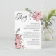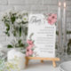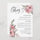 Menu de casamento floral cor-de-rosa com um roteiro bonito, fontes elegantes e flores cor-de-rosa com verde.