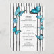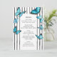 Borboletas azuis Borboletas modernas listras Menu de casamento. Escolha elegante para casamentos de verão. Parte de uma coleção de casamento. Cartão com opção de refeição
