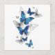Borboletas azuis voadoras morfo e borboletas brancas em um fundo de abstrato leve. Morpho. Design com borboletas azuis morfo.