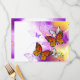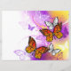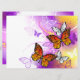 Laranja, borboletas monarcas detalhadas sobre luz, roxo, pitoresco, fundo pintado.
