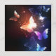 Borboletas brilhantes à noite num fundo abstrato escuro. Borboletas noturnas. Design com borboletas.