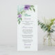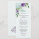 flores românticas azuis e roxas verdes folhas cardápio de casamento botânico