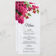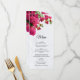 Um belo design com Bougainvillea floral rústica e sai num muro branco de lavagem da ilha grega de estilo mediterrânico. Um elegante cartão de cardápio de flores Bougainvillea de casamento perfeito para casamentos do estilo grego Island e mediterrânico. Os convites de casamento e outros artigos de papelaria também estão disponíveis.