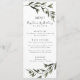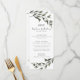 Menu de casamento da caligrafia verde moderna. Um galho de azeitona botânica para um casamento italiano.