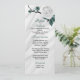 Menu branco preto e flores azuis lacustres belas bodas