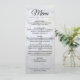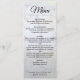 Este belo menu irá adicionar algum estilo à sua recepção de casamento. Projetado como parte do nosso Suite de Casamento Reflexões Brancas, ele apresenta texto preto sobre um fundo refletindo flores brancas e corações. O texto é totalmente personalizável para que você possa digitar apenas as informações necessárias.