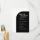 Um belo cardápio de noiva para a celebração do seu chá de panela. A placa de menu elegante apresenta um título simples com uma apresentação mínima do menu.