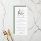 Projetado para combinar com nossos convites de degustação de vinhos 'Brinde ao Amor' para chuveiros de noiva, jantares de ensaio e festas de noivado, os menus apresentam uma garrafa de vinho rosé inscrita com as iniciais do casal em um leito de folhagem verde suave de aquarela. Personalize com os detalhes do menu do seu evento em letras clássicas cinzas.