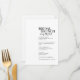 Um belo cardápio de noiva para a celebração do seu chá de panela. A placa de menu elegante apresenta um título simples com uma apresentação mínima do menu.