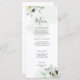 Comemore o estilo in com esta elegante placa de menu com anêmona de aquarela e buquês de eucalipto verde em uma lavagem de aquarela verde macia.