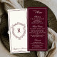 Menu Burgundy Ivory Monogram Crest Old Money Wedding