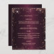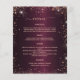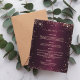 Um menu elegante e glamouroso. Um fundo de gradiente arrojado profundo, decorado com faíscas de ouro rosa. Rosa dourado. Personalize e adicione o menu. Você pode adicionar mais texto, fotos no verso. 1 folha = 1 menu impresso borda a borda.