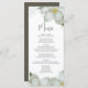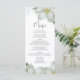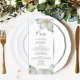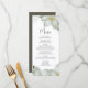 Este design apresenta um menu de casamento, com elegantes, caligrafia e um simples fundo branco com flores magnólia, verde magnólia e sotaques florais, perfeito para decoração de recepção