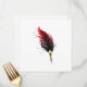 Caneta antiga, desenhada artificialmente, embelezada com pena vermelha escura sobre fundo branco.