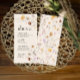 Os cartões de menu de casamento são caracterizados pelo estilo boho, arte floral e cores bege, com uma mistura de diferentes estilos de fonte, muitas vezes em tamanhos diferentes, para criar uma aparência única e eclética que torna a estética natural deste menu.