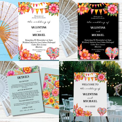 Dê vida ao espírito vibrante do seu dia especial com este cardápio mexicano personalizado de casamento, perfeito para o tema Fiesta Wedding! Apresentando flores cor-de-rosa, laranja e amarelas brilhantes emparelhadas com bandeiras festivas embebidas em fundo branco nítido, este cartão de menu irradia diversão e elegância coloridas. As maracas florais cor-de-rosa e laranja entremeadas com sotaques azuis empoeirados adicionam um toque lúcido, mas refinado. Projetado com uma mistura de fontes tradicionais mexicanas e de scripts fluentes, é a maneira perfeita de celebrar amor, cultura e alegria na sua festa de casamento!