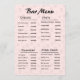 Menu Cardápio de Bebidas Barra Simples Rosa