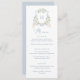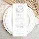 Cartão de Menu de Crest de Casamentos Brancos Azuis e Elegante Floral. Elegante Floral White Greenery Menu Casamento
