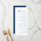 Adicione um toque elegante às mesas do seu evento com este cardápio personalizável. Ele apresenta uma tipografia simples e uma escrita caprichosa. Personalize este cardápio moderno adicionando seus próprios detalhes. Este cardápio azul-marinho e branco é perfeito para casamentos, chá de noiva, chá de bebê e muito mais.